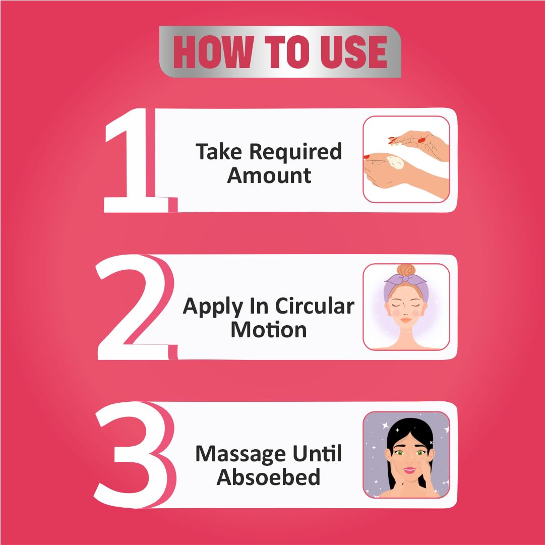 Cleanse your face totally.Take a pea-sized quantity of Glow Help Cream.Gently therapeutic massage onto your pores and skin in upward motions.Use every day for finest outcomes!