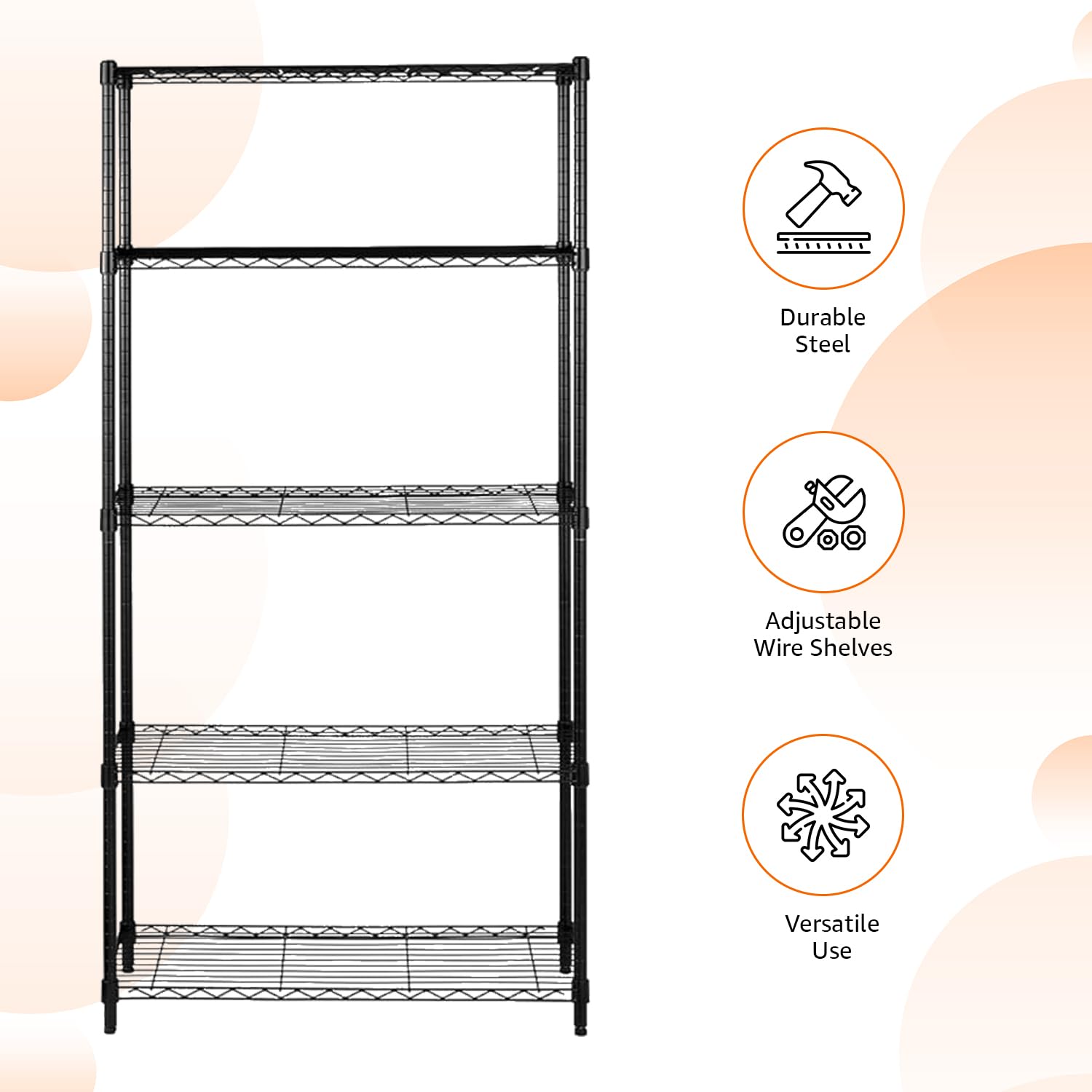 Particulars Shelving unit for kitchen, workplace, dorm, or storage Adjustable-height shelves–no instruments required Metal building with leveling toes Every wire shelf holds 160 kg for a complete weight capability of 790 (evenly distributed)