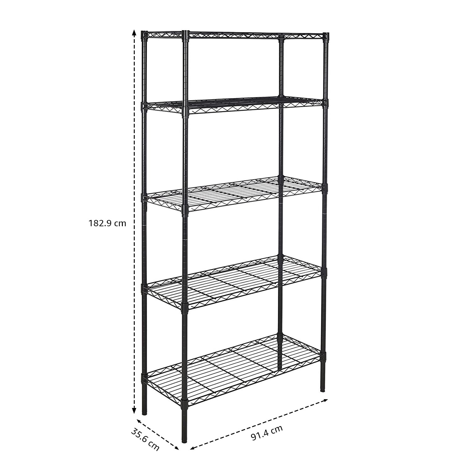 Create helpful vertical area with this sleek-looking shelving unit from AmazonBasics. Combining modern beauty with a conveniently adjustable design, the five-shelf unit will increase your shelf area, with every wire shelf holding as much as 160 kg for a complete weight capability of 790 kg (evenly distributed). A helpful addition to any dwelling area or storage space, the five-shelf shelving unit affords exceptional energy, comfort, and flexibility.