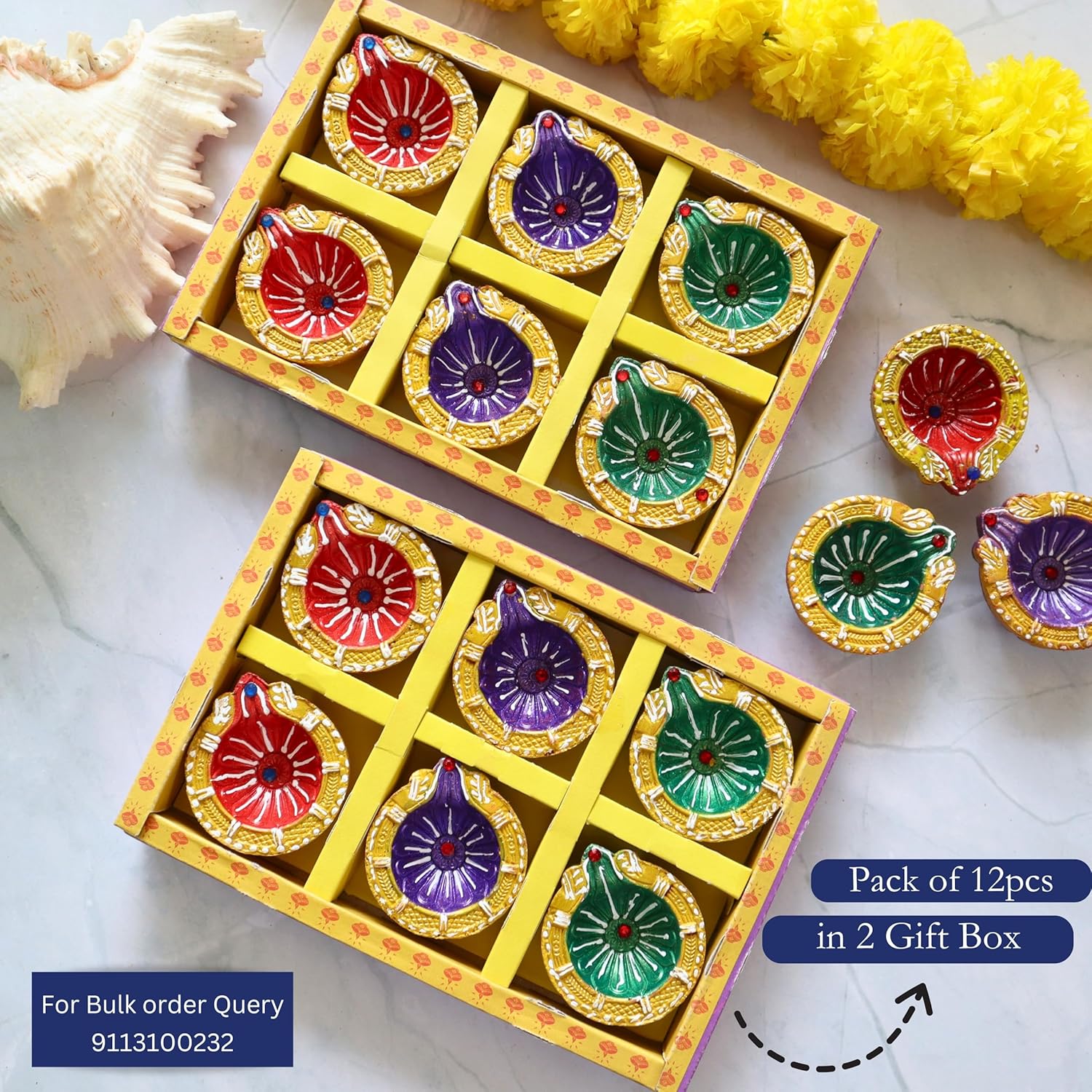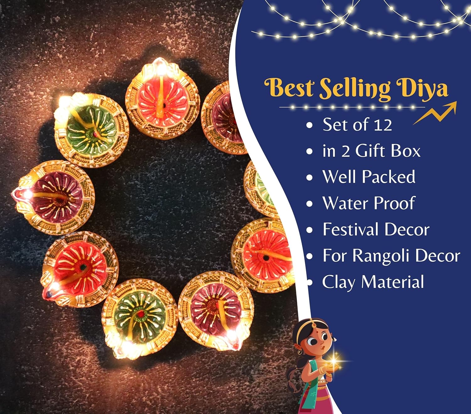 In field you’re going to get 12pcs ornamental diyas in 2 containers, every field accommodates 6 pcs diyas complete 12 pcs diyas. These lovely clay diyas are made by the fingers of Indian Karigar. This festive season use these Indian Karigar diwali diyas to embellish your own home, workplace, balcony, diwali decor. Good for diwali diyas for adornment, ornamental diyas for diwali, diya for diwali ornament, diyas for diwali pageant.