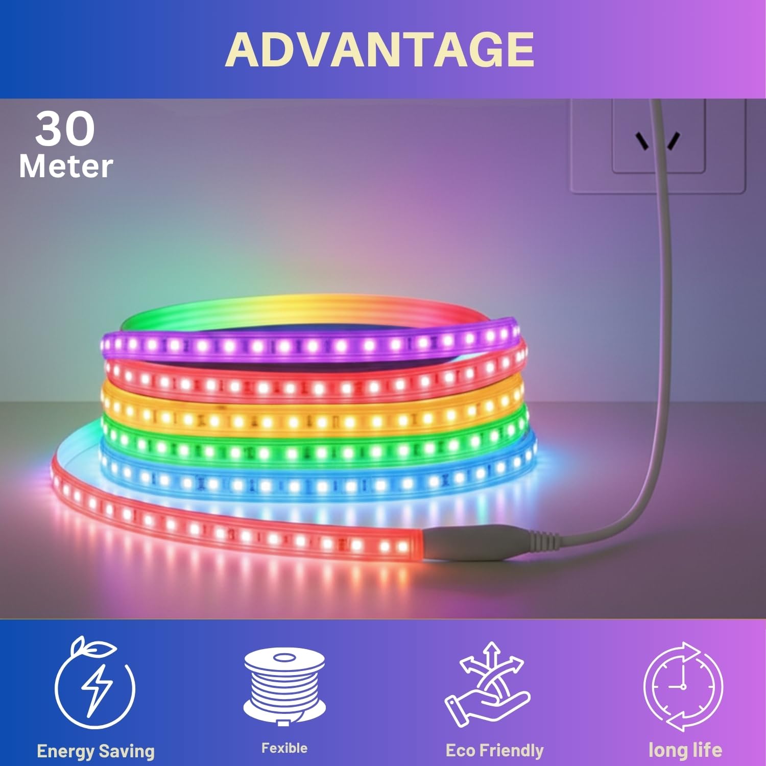 🔌 Simple to Set up & Use – Comes with a plug-and-play setup; no electrician required. Merely plug into an ordinary energy outlet and revel in stunning lighting in seconds. Versatile design permits simple bending round corners and curves.