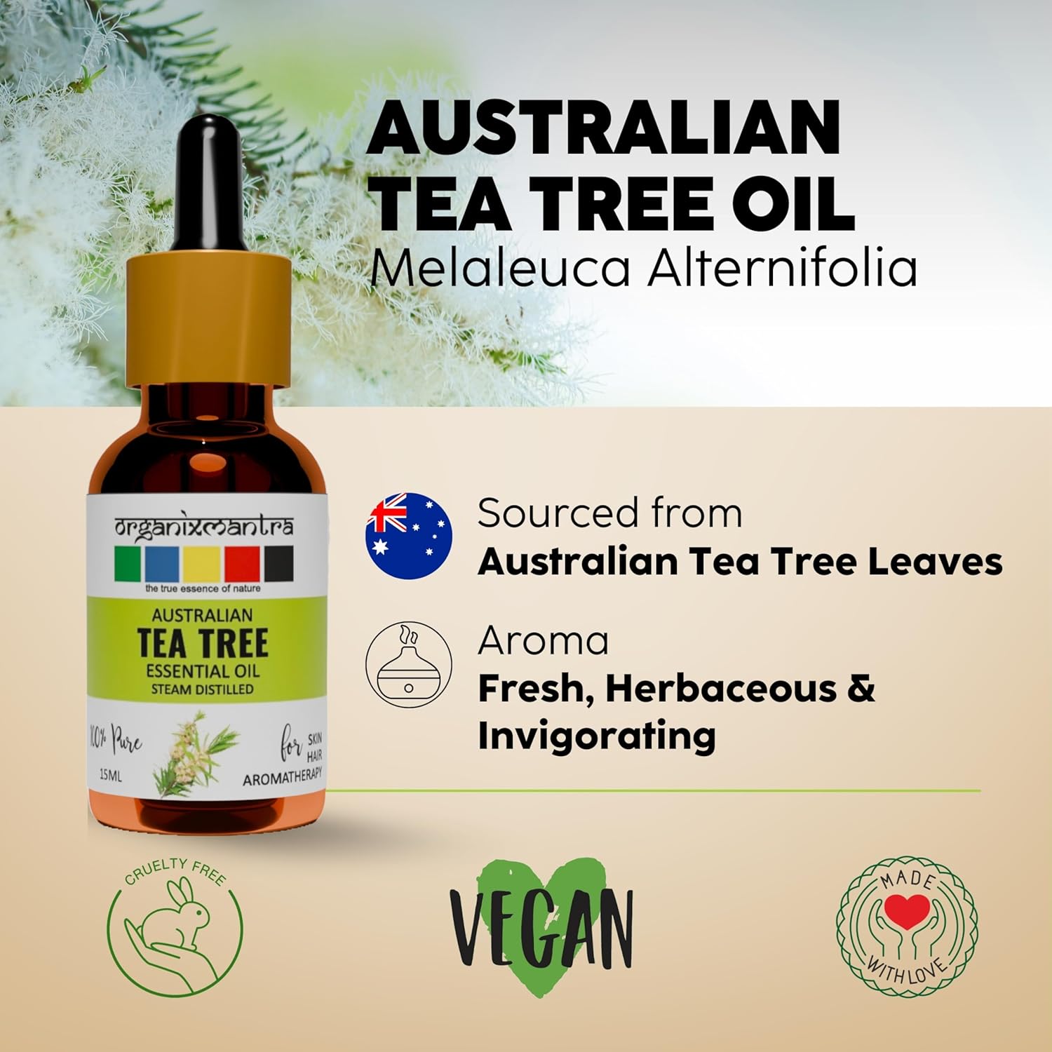 Merchandise mannequin quantity : OM-TEA-TREE-ESSENTIAL-OIL-ORGANIC-15ML