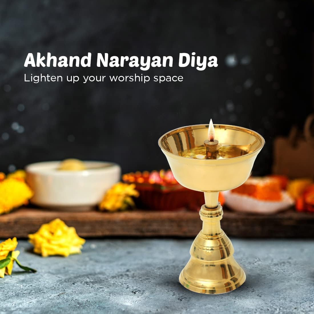 Premium Brass Craftsmanship: This akhand diya for puja is meticulously handcrafted from high-quality brass, providing an ideal mix of conventional aesthetics and long-lasting sturdiness.