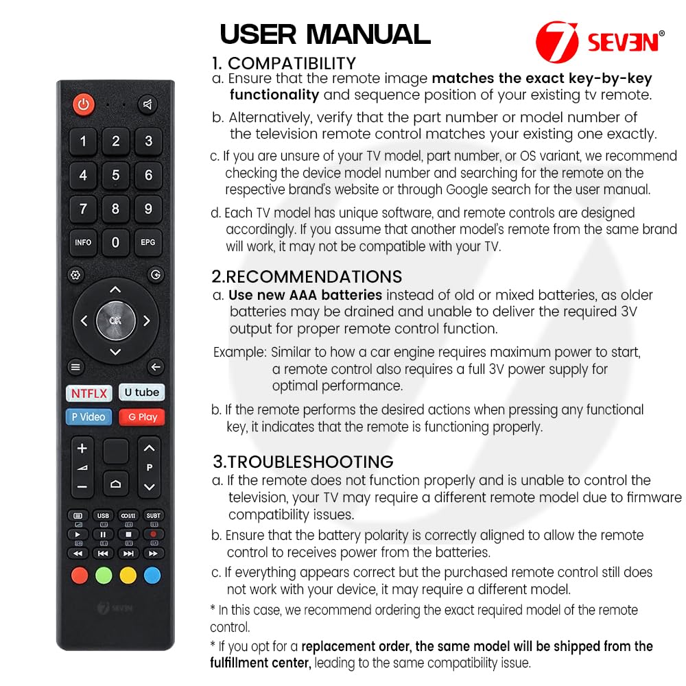 【Precise Match Really helpful】: Earlier than buying, please make sure that the keys on this distant precisely match your present distant management. VU televisions use totally different working methods and applied sciences throughout numerous collection, and remotes are developed uniquely for every