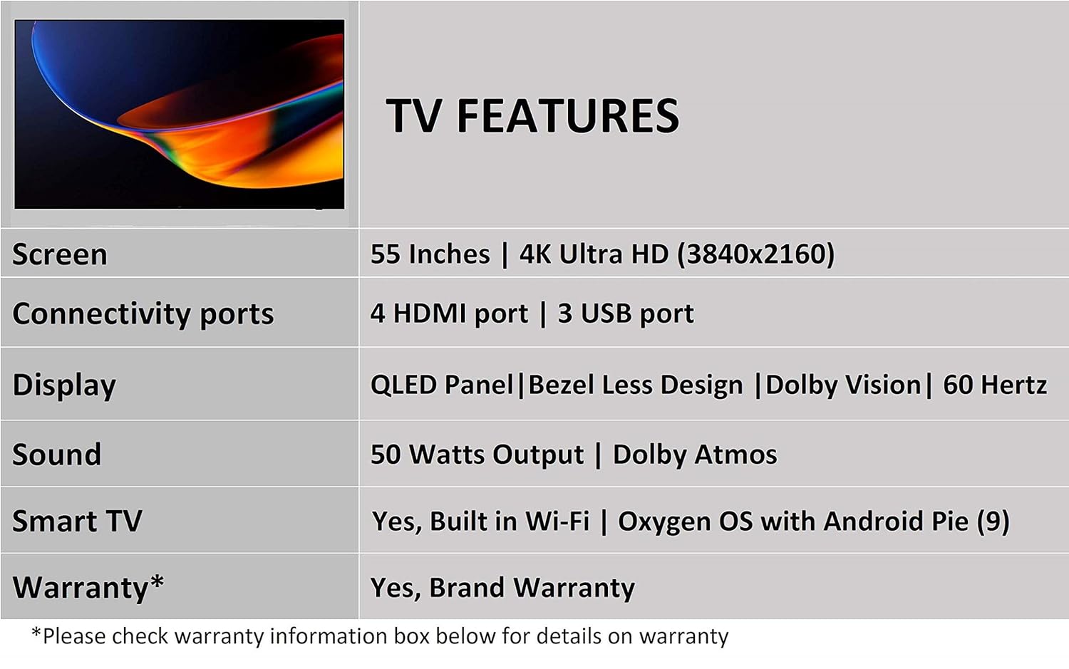 Good TV Constructed-In Wifi | One Click on Amazon Prime Video Button Distant | Android TV | Google assistant | Oxygen OS with Android Pie (9) | RAM 3 GB | 16 GB Storage | CPU: A53*4 | OnePlus PQ Engine Gamma Shade Magic | Chromecast Constructed-in |OxygenPlay VOD choice | Display casting | OnePlus Join Cell Sync and management | Bluetooth Stereo mode | File browser(native media participant)