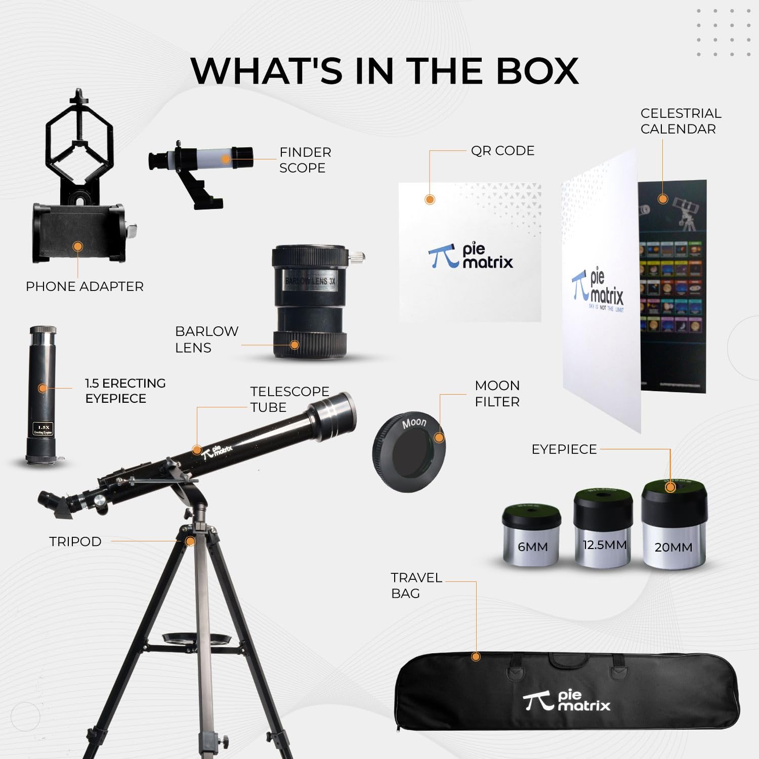 Versatile Remark: The Pie Matrix Phoenix 60700 Refractor Telescope is ideal for each terrestrial and celestial remark, making it ultimate for on-the-go viewing. It gives breathtaking views of planets, the moon, star clusters, and brighter stars, offering a flexible expertise for numerous sorts of observations