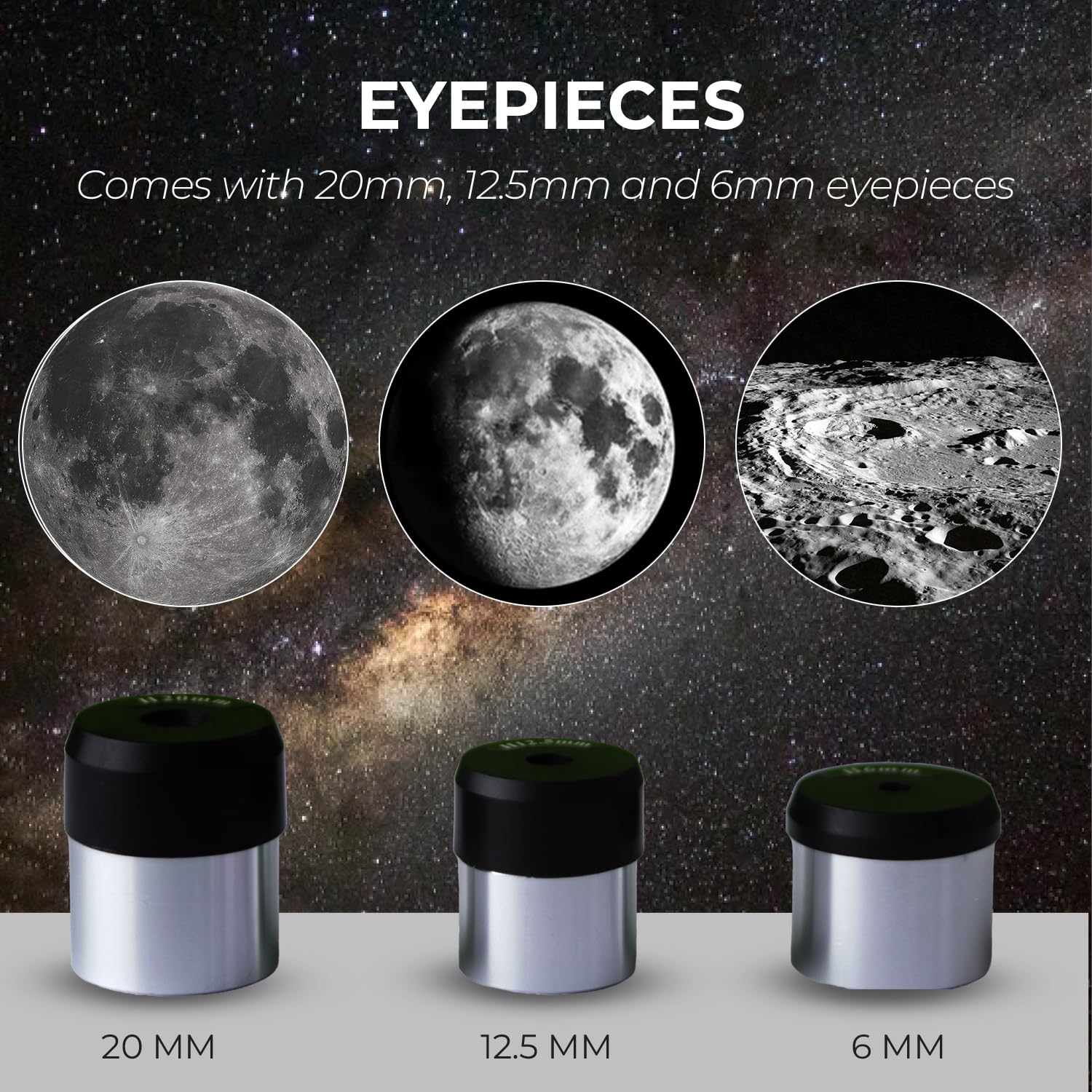 Included Elements                                                                        :                                                                        Glossy Aesthetics: Encased in a starry black optical tube and perched on an electroplated black tripod, our telescope provides a contact of sophistication to your stargazing periods