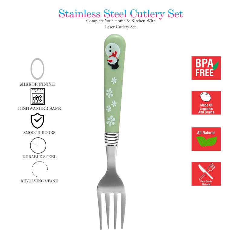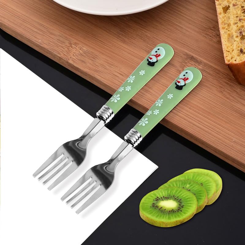 Item Name : Pure Source India Flower & Snowman Theme Stainless steel Fork for Kids Dining Table, Cutlery Set for Dining Table, Gifting Set for All Occasions, Home Kitchen, Kids Eating Cutlery Set Of 6 (GREEN 6 INCH.)