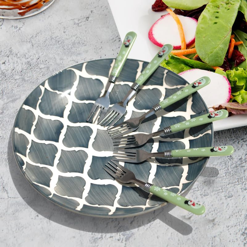 Package Content: 6 Pcs. Stainless steel Fork with flower and snowman Design